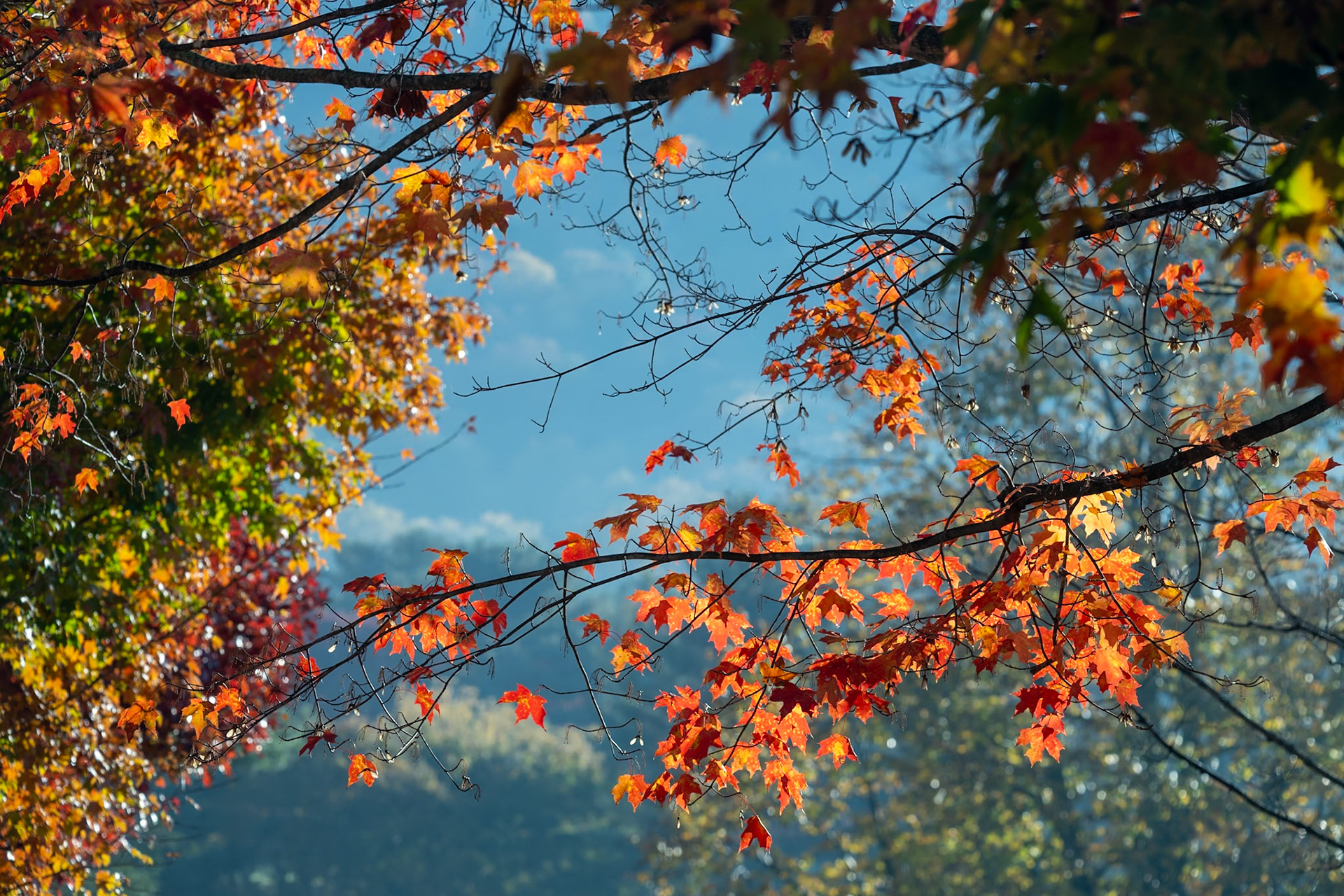 Yellow leaves and blue water. Great Smoky Mountains National Park.